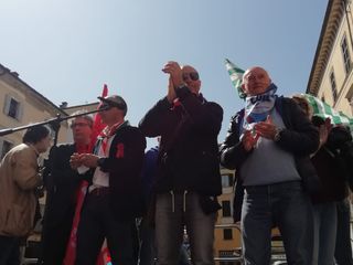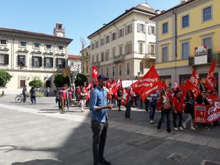 La manifestazione organizzata da Cgil Cisl e Uil ha visto il corteo snodarsi per le vie del centro storico partendo da Piazza Cavour per approdare in.piazza Gramsci, dove dal palco si sono susseguiti gli interventi.
