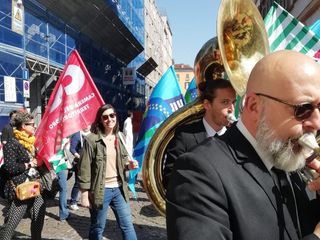 Le bandiere e gli striscioni del sindacato, il suono della marching band “Bandakadabra”, giovani e meno giovani, novaresi e immigrati: un Primo Maggio secondo tradizione questa mattina a Novara.