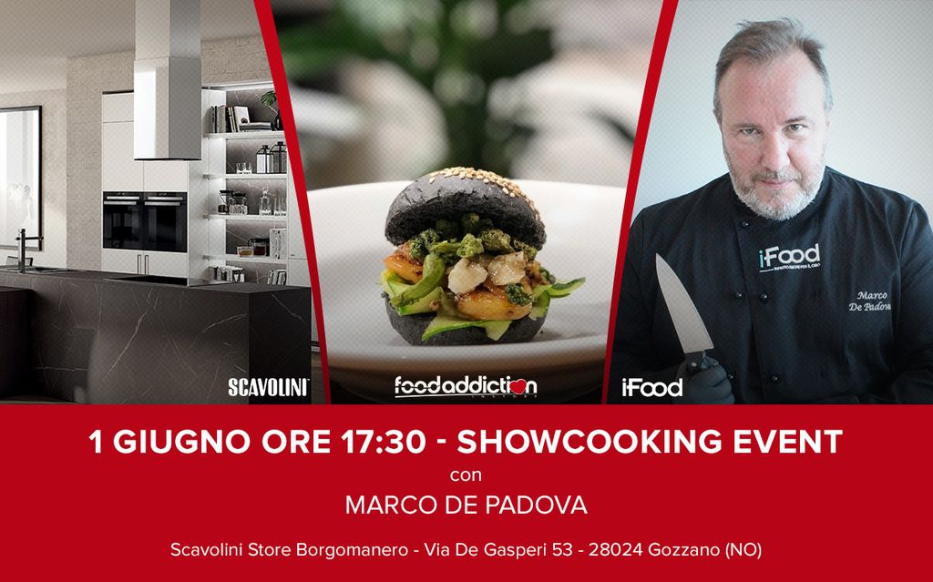 Sabato 1 giugno a partire dalle 17:00 presso lo Scavolini Store Borgomanero il blogger Marco De Padova di iFood si esibirà in uno show-cooking gratuito e aperto al pubblico realizzando il suo nuovo panino “Hole-in-one” in versione #TagliaSmall.