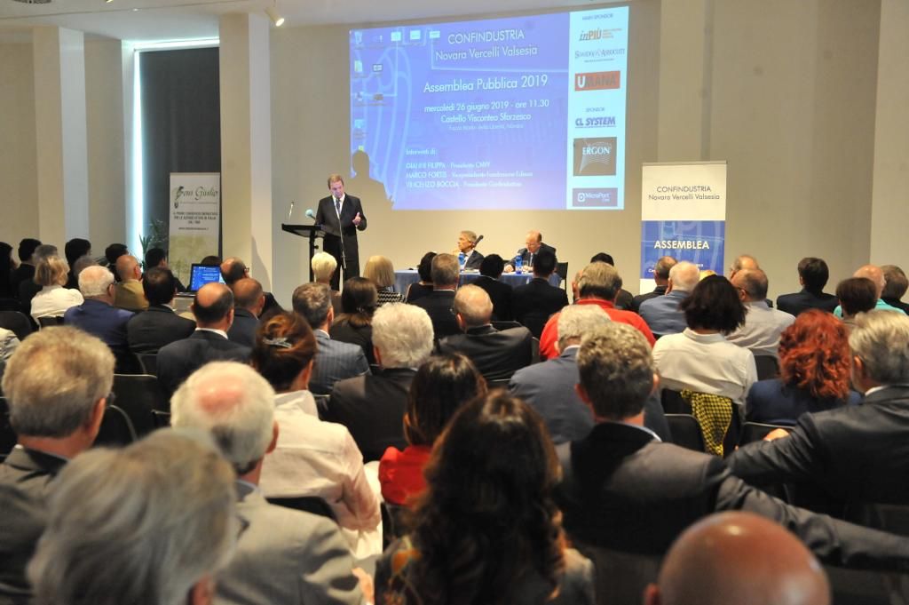 Un mondo industriale che non si pone come “contraltare” della politica, né che vuole sostituirsi ad essa, ma che attraverso argomenti economici vuole ottenere grandi obiettivi politici. È questa la Confidustria che emerge dal discorso che il presidente nazionale della più grande associazione degli imprenditori ha tenuto questa mattina al Castello di Novara in occasione della prima assemblea generale di Confindustria Novara Vercelli Valsesia. Oltre 750 aziende associate, con quasi 45mila dipendenti complessivi, Confindustria Novara Vercelli Valsesia è nata nel gennaio 2019, prima tra le organizzazioni degli imprenditori del Piemonte a realizzare una fusione per incorporazione, CNVV è arrivata oggi ad un primo momento di verifica, che cade in un momento di particolare delicatezza per il Paese.