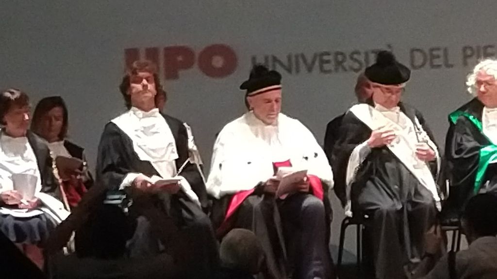 La formula di conferimento della laurea, rigorosamente in latino, é stata pronunciata dal rettore dell'Università del Piemonte Orientale, Gian Carlo Avanzi.
