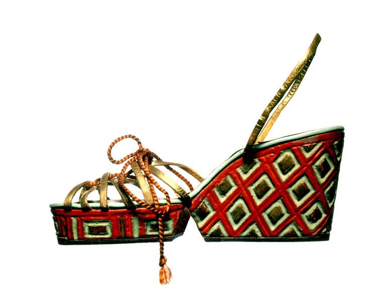 Un approccio creativo, ma anche scientifico, studia l’anatomia del piede, ricerca l’equilibrio, le scarpe devono essere comode, poi nelle sue mani diventano opere d’arte. E’ attratto dal colore, che modula sapientemente, colori saturi, accesi, come i colori del sud. Ma ancora di più sono i materiali ad attirare la sua attenzione, ne usa i più disparati, soprattutto nel periodo dell’autarchia, rafia, cellophane, tela, fili di nylon, il rascello ottenuto dalla corteccia del pioppo, il merletto, sino alla pelle di pesce. Il suo utilizzo li nobilita, conferisce loro un diverso stato, ne deriva una nuova immagine di calzatura, tanto che questo gli vale nel 1947, il premio Neiman Marcus, l’oscar della moda, assegnato per la prima volta a un creatore di calzature.