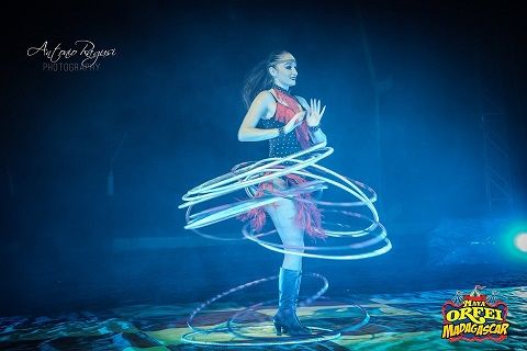 L’essenza del circo è il valzer colorato di acrobati, equilibristi, clown, contorsionisti, giocolieri, antipodisti, addestratori in simbiosi con i loro amati animali, ecco il Maya Orfei Circo Madagascar. Una favola da vivere intensamente, attraverso lo charme del presentatore, Dario De Felice, che con il suo stile dialettico, illustrerà le numerose attrazioni internazionali e pluripremiate: l’Alta Scuola di Equitazione dell’audace Tamara Bizzarro, Daniele Martini con la sua maestosa cavalleria; forti emozioni e carica di adrenalina con l’attrazione del globo della morte del team Lucena Extreme dei motociclisti spericolati Junior & Kevin; lo straordinario numero, mano a mano delle Bazan Sisters; l’addestratore Giorgio Piazza con il suo avvincente numero in gabbia con tigri, leoni e il suo felino doc il leone bianco Artù; l’affascinante Stefany Stojcic alle cinghie aeree; Massimo Martini e il suo team di animali esotici: cammelli, zebre, la simpatica e cordiale giraffa, il goloso ippopotamo e l’imponente elefante ed ancora lama, watussi e struzzi. Bellezza artistica e massima agilità, con l'antipodismo di Frida Sambiase e il numero di verticali e contorsionismo di Nicole e Kimberly Martini. Ad intrattenere il pubblico tra una risata e l’altra, i clown musicali della famiglia Bazan. Tradizione circense ed innovazione, non poteva mancare l’ultima attrazione targata USA, dall’America l’auto Transformer amata da grandi e piccini ed ancora tante altre sorprese da scoprire esclusivamente sotto lo chapiteau.
