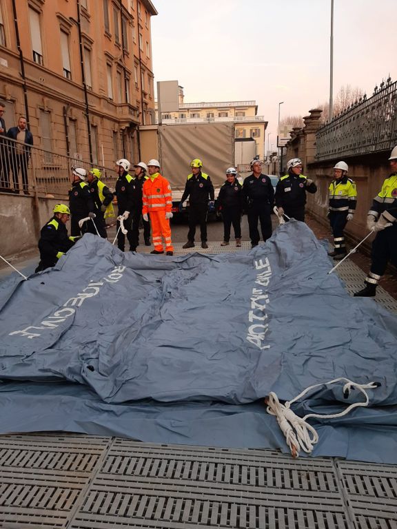 Anche a Novara, in ossequi a quanto disposto dall’assessore regionale alla Sanità del Piemonte, Luigi Genesio Icardi, d’intesa con il coordinatore dell’Unità di crisi regionale è stata allestita nei pressi del Pronto Soccorso dell’Ospedale Maggiore una tenda pneumatica della Protezione civile per le attività di pre-triage, in modo che gli eventuali casi sospetti di contagio possano accedere a un percorso differenziato, a tutela delle norme di prevenzione che impediscono la diffusione del virus. A Novara la struttura è stata collocata nello spazio adiacente al muro perimetrale lungo baluardo Massimo D’Azeglio nei pressi dell’ingresso delle ambulanze al Pronto Soccorso. La tenda è stata collocata a cura dei volontari della protezione civile di Novara.