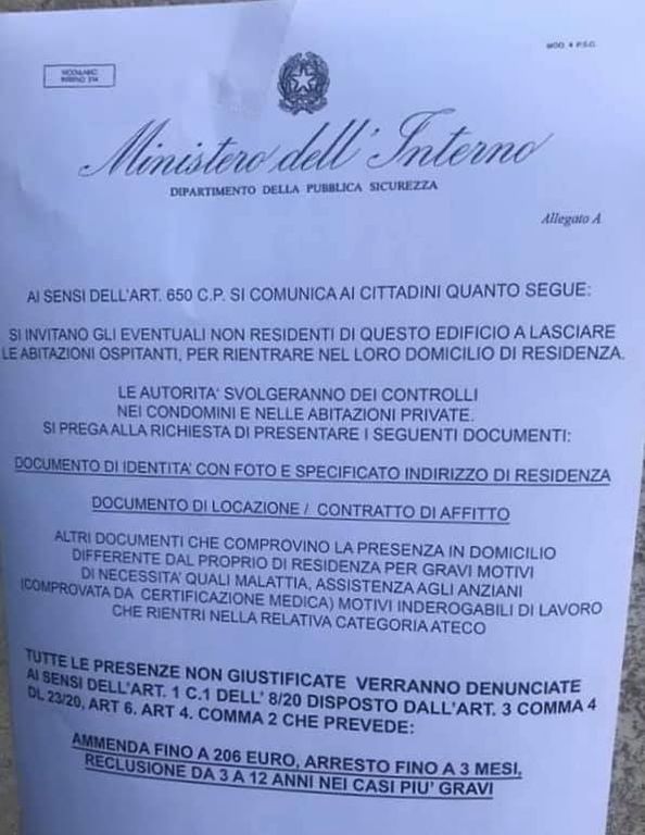 Riporta anche l’obbligo di presentare, a richiesta, la documentazione di affitto della casa e i propri documenti con foto.