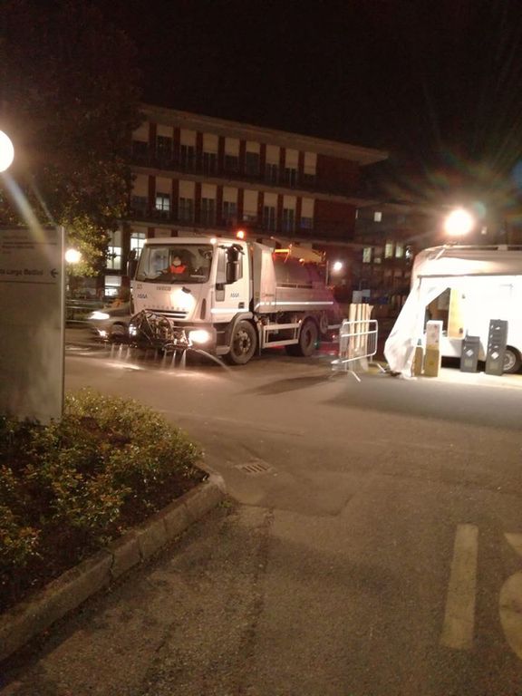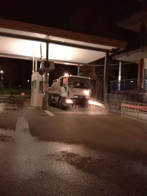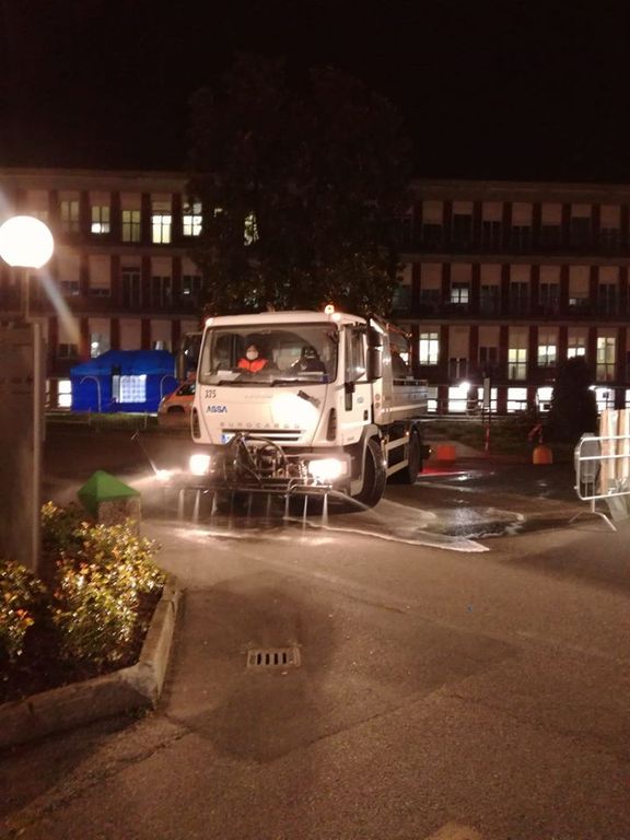 Lavaggio e sanificazione della viabilità interna dell’Azienda Ospedaliero Universitaria Maggiore della Carità di Novara, un servizio offerto gratuitamente da Assa in questo momento di emergenza epidemiologica.