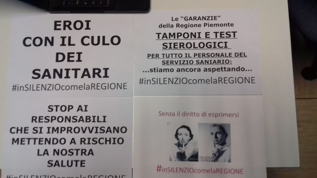 Questa mattina alle 10 si è svolto il flash mob del personale sanitario degli ospedali piemontesi indetto dai sindacati Cgil e Uil, gli organizzatori si ritengono soddisfatti della risposta alla mobilitazione virtuale.