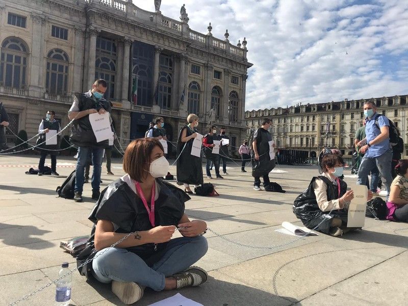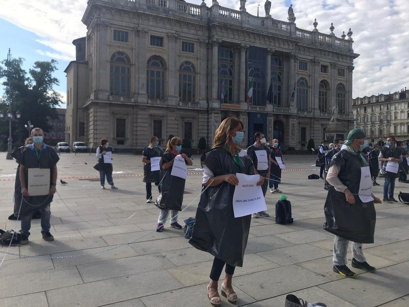 Gli eroi sono stati dimenticati. È questa la grande accusa che gli infermieri piemontesi del Nursid rivolgono alle istituzioni locali e nazionali. Vestiti con i sacchi neri dell’immondizia che sono stati costretti a utilizzare nei lunghi mesi di lotta al Covid, gli infermieri hanno omaggiato sdraiandosi per terra i 40 colleghi che hanno perso la vita dopo aver contratto il Coronavirus nei reparti.