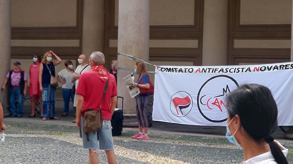 Contro la presenza dell’esponente di estrema destra a Novara, nella vicina Piazza Duomo hanno manifestato in contemporanea gli esponenti del Comitato Novara Antifascista ed altre organizzazioni di sinistra. Qui i presenti erano poco più di un centinaio.