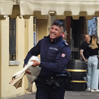 Il salvataggio del cigno diventa virale: protagonista un agente della polizia locale VIDEO