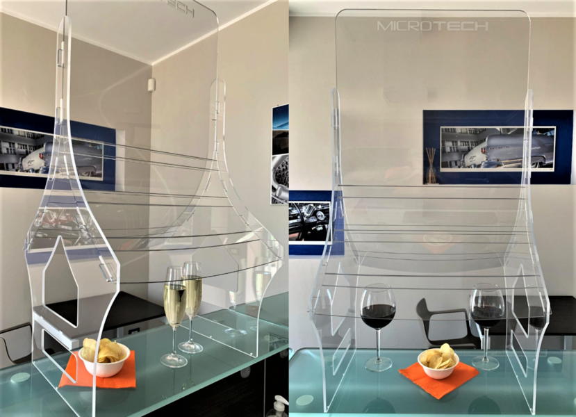 Da un paio d’anni ha sviluppato competenze anche nella lavorazione di materiali plastici che hanno permesso, per l’appunto, la riconversione durante l’emergenza sanitaria. Oltre alla realizzazione di visiere, da marzo Microtech realizza inoltre “ripari” – conosciuti come plexiglass – ideali per gli ambienti pubblici di esercizi commerciali, interamente personalizzabili e di varie tipologie, adatti ad ogni attività.