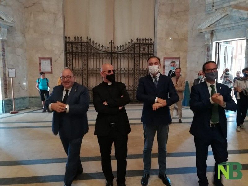 "La Regione ha fatto un investimento importante perché Oropa è patrimonio della nostra regione e dell'umanità, legata al concetto di Biella Città Creativa Unesco". Queste le parole del presidente della Regione Piemonte Alberto Cirio, che questa mattina 12 settembre ha fatto visita alla Basilica Superiore per ammirarne da vicino l'imponente lavoro di restauro. Il grande progetto ha infatti visto in campo vari enti del territorio locale e piemontese a cominciare dalle numerose Fondazioni Bancarie, tra cui quella della Cassa di Risparmio di Biella, i cui rappresentanti hanno partecipato alla conferenza stampa di questa mattina. Presenti tra i banchi anche il vescovo di Biella roberto Farinella, il rettore del Santuario don Michele Berchi, il sindaco di Biella Claudio Corradino, il consigliere regionale Michele Mosca e don Valerio Pennasso, direttore dell'ufficio nazionale dei Beni Culturali Ecclesiastici della Cei.