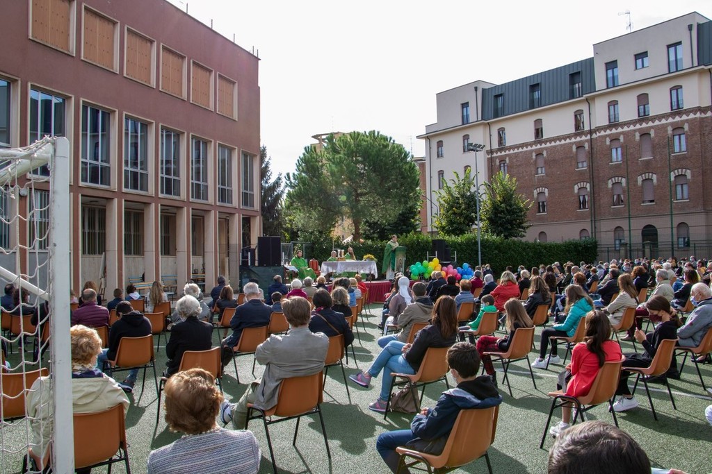 Quasi cinquecento parrocchiani e amici, radunati nel campo di calcio dell’Oratorio allestito per l’occasione per ospitare la celebrazione liturgica nel rispetto rigoroso delle regole anti-Covid, hanno salutato domenica al Sacro Cuore don Sandro Mora, il coadiutore che lascia la parrocchia novarese per una nuova esperienza tra teologia e arte, al Centro Aletti di padre Marko Rupnik a Roma.