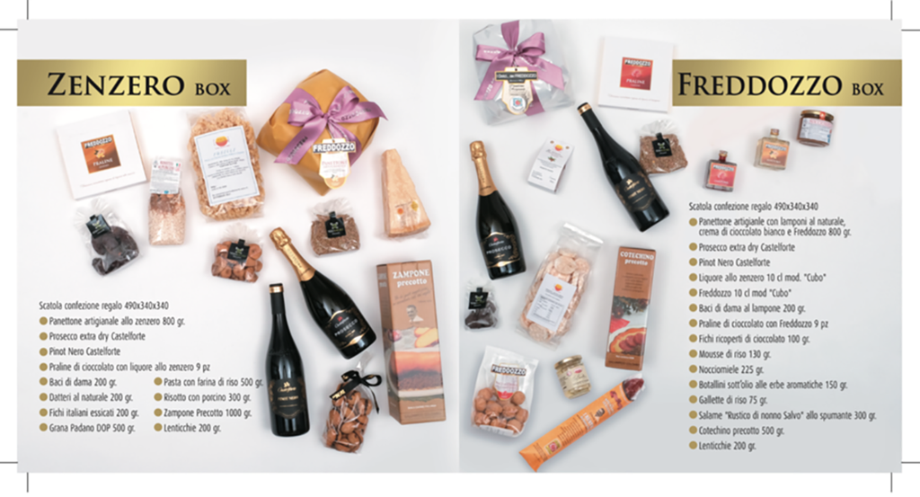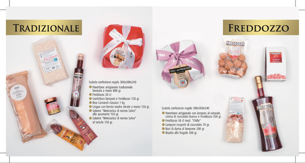 Per le festività natalizie, AlpiFOOD ha così ideato delle proposte speciali per fare regali di Natale a km0 scegliendo prodotti del territorio: panettoni tradizionali o “alternativi” al lampone, allo zenzero, al pistacchio o al mirtillo; biscotti come baci di dama e torcetti; frutta secca e disidratata; salami “tutti i gusti” della linea Nonno Salvo; cotechini e zamponi; sfiziosi cioccolatini e liquori artigianali.