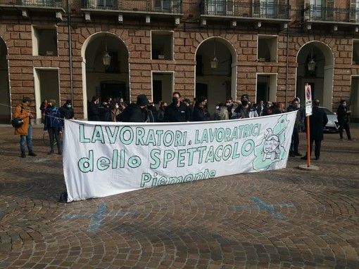 Anche il mondo della cultura si unisce in protesta contro il Dpcm del 24 ottobre del Governo Conte. Si sono ritrovati questa mattina in piazza Castello, circa un migliaio di lavoratori dello spettacolo piemontesi, per la manifestazione regionale indetta da Slc Cgil, Fistel Cisl e Uilcom-Uil a seguito delle nuove misure restrittive per l'emergenza Covid, che minano ulteriormente le economie del comparto, già martoriate dallo scorso febbraio.