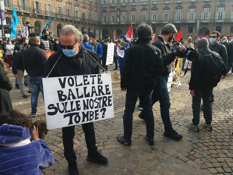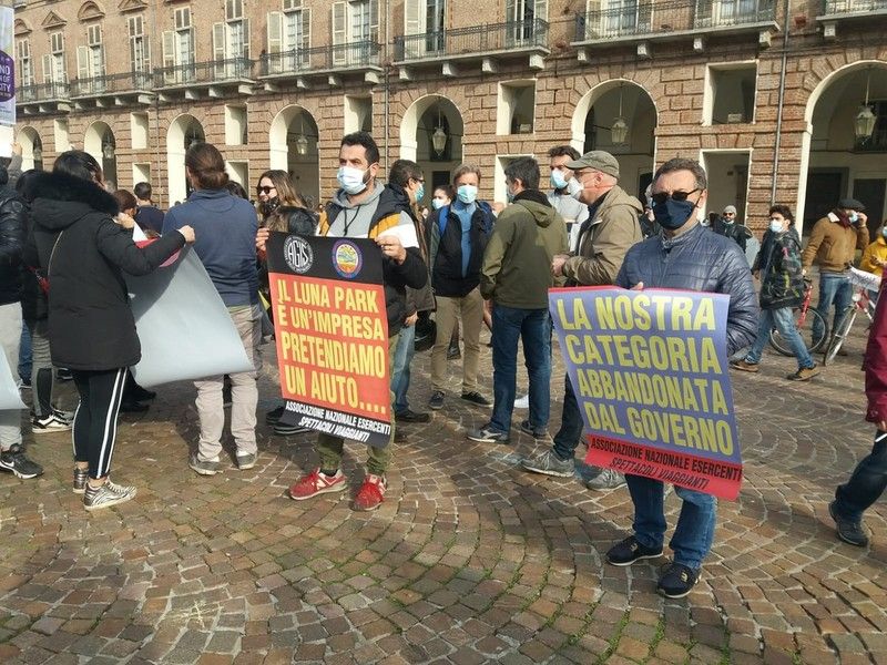 Presenti anche i lavoratori del Teatro Regio, fermi dal 23 febbraio, l'associazione nazionale degli esercenti dello spettacolo viaggiante (circhi, luna-park), circoli Arci Torino, di nuovo bloccati dopo aver adeguato gli spazi alle normative post lockdown. Una parola che ora torna pericolosamente a minacciare il nostro quotidiano. Il coordinamento dei Lavoratori e lavoratrici dello spettacolo Piemonte ha anche lanciato dal palco, per il 7 novembre, un'altra manifestazione di piazza.