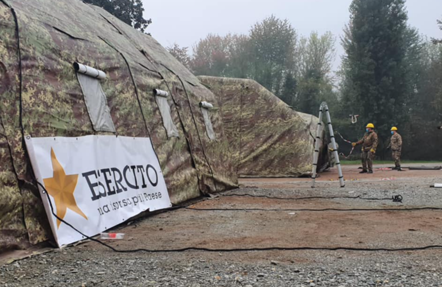 Sono stati ultimati nella mattina di sabato i lavori per l’installazione delle tende dell'esercito che saranno utile per migliorare la gestione dei pazienti dell'ospedale di Vercelli e che potranno ospitare fino a un massimo di 20 persone.
