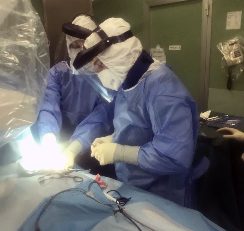 Sono state necessarie due ore per la sanificazione e preparazione della sala, oltreché per il paziente e l’intervento.