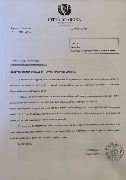 Il Sindaco di Arona Federico Monti, tramite i social network, aggiorna la cittadinanza sulla situazione della SS 33 del Sempione:Il Sindaco di Arona Federico Monti, tramite i social network, aggiorna la cittadinanza sulla situazione della SS 33 del Sempione: