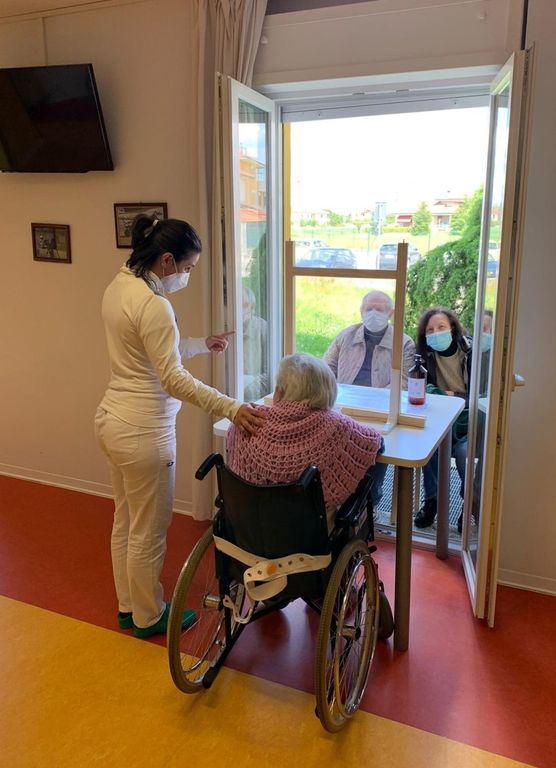 Gli ospiti e i loro parenti possono infatti incontrarsi attraverso una ampia portafinestra della struttura, disponendosi ai lati opposti di un tavolo dotato di parete divisoria in plexiglass. Le visite durano in genere mezz’ora, avvengono su appuntamento e sono autorizzate dal direttore sanitario nel pieno rispetto delle linee guida emanate dalla Regione. Al visitatore, che si deve sottoporre al controllo della temperatura corporea e a un test rapido di negatività, vengono forniti i necessari dispositivi di protezione individuale. Eventuali piccoli regali vengono fatti depositare in una stanza e consegnati solo dopo la loro sanificazione mentre i doni in alimenti vengono accettati solo se preconfezionati.