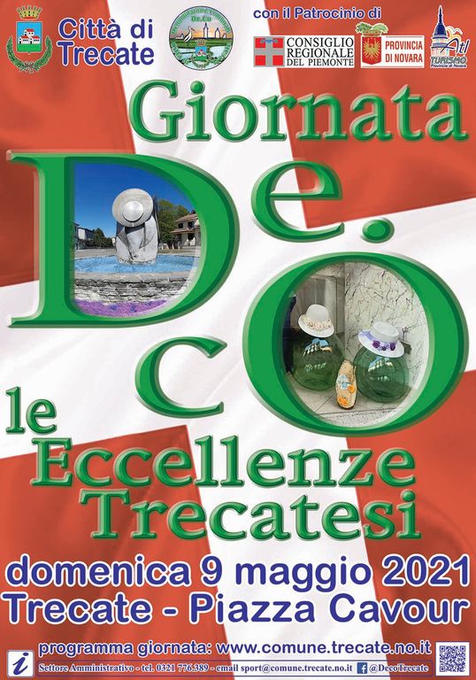 Domenica 9 maggio si svolgerà la prima “Giornata De.Co – Eccellenze Trecatesi”: dalle 9 in piazza Cavour sarà allestito l’Agrimercato con gli operatori di “Campagna Amica” e alle 10.30, alla presenza delle istituzioni, verrà aperto il punto De.Co in piazza Cavour 29-30, presso l’ufficio Ambiente.