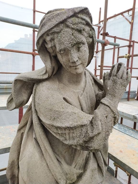 Continuano i lavori di restauro alla statua dedicata a l’Immacolata e collocata al centro di piazza Martiri. Dopo l’installazione dei ponteggio, la ditta SM Munaro Restauri si sta occupando della pulitura della scultura.