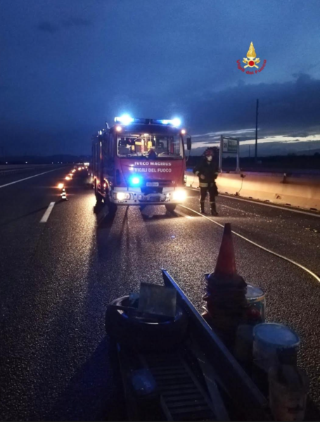 Il nostro intervento è valso alla messa in sicurezza del mezzo, che trasportava vernici, e di tutto in tratto autostradale interessato: per fortuna non ci sono state conseguenze per il conducente. Sul posto sono intervenute la Polizia stradale e il personale autostrade per gli accertamenti del caso e il controllo della viabilità.