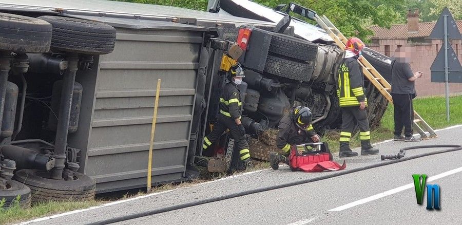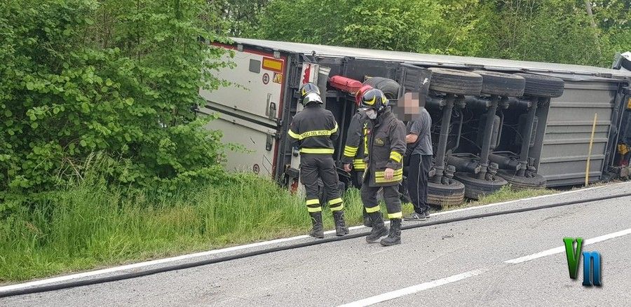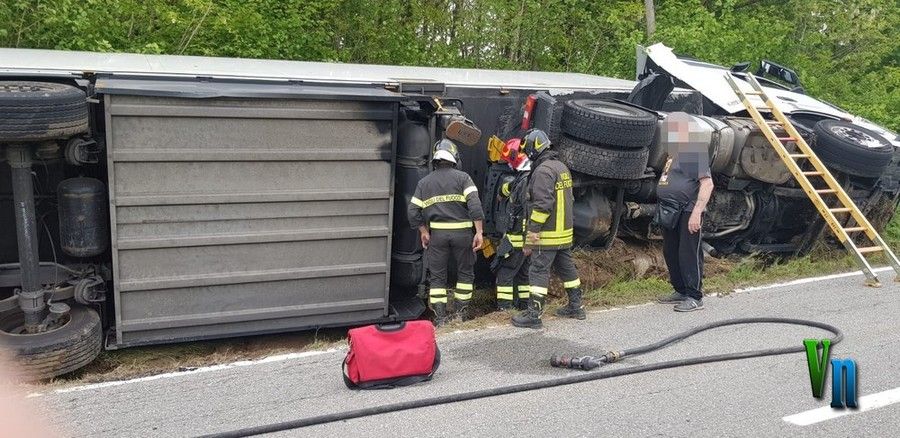 Perde il controllo del camion e finisce ribaltato fuori strada. È quanto accaduto poco fa, nella mattinata di oggi 15 maggio, in via Rovasenda a Gattinara. L'incidente, autonomo, è avvenuto per cause da accertare. Nessuna ferita per il conducente del tir, che ora dovrà probabilmente essere recuperato con l'aiuto della gru. Intanto i Vigili del Fuoco intervenuti sul posto stanno valutando eventuali pericoli e mettendo in sicurezza l'area e il mezzo. Con loro anche i Carabinieri per rilievi e viabilità.