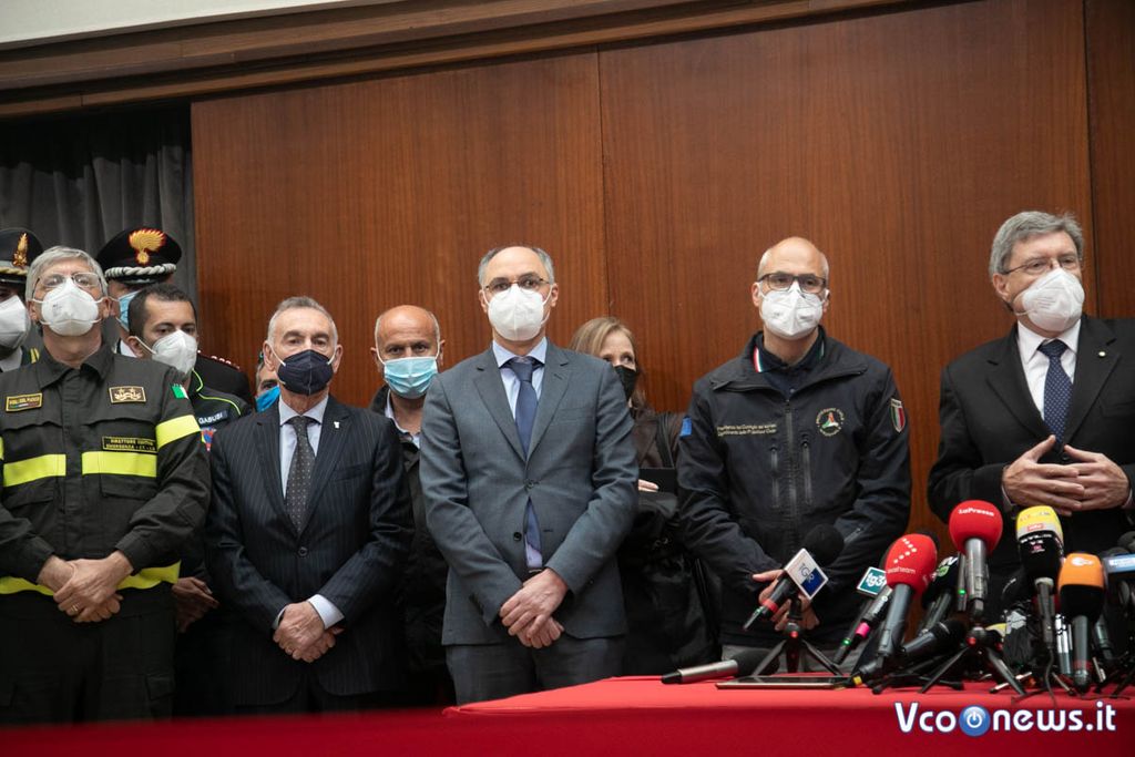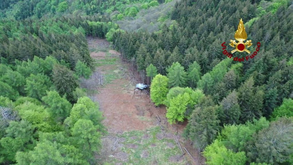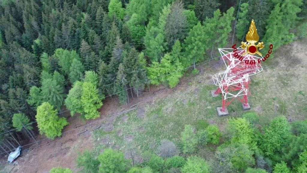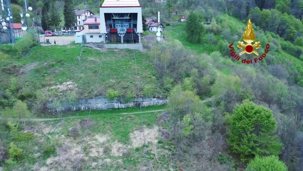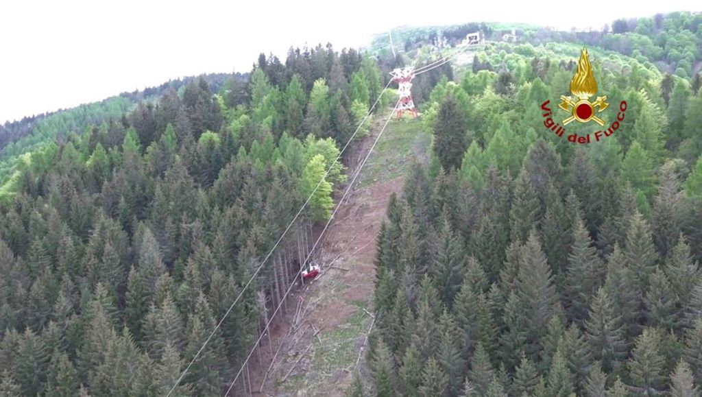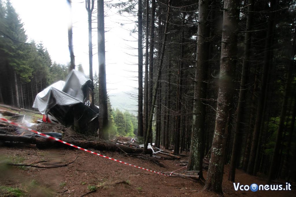 Ecco come si presentava questa mattina il luogo della tragedia. La cabina della funivia coperta da un telo, i prati e i boschi delimitati dai nastri bianchi e rossi delle forze dell'ordine. I Carabinieri a presidiare a valle il luogo dove domenica hanno perso la vita 14 persone. La pioggia a rendere ancor più tetro e triste il prato della disgrazia.