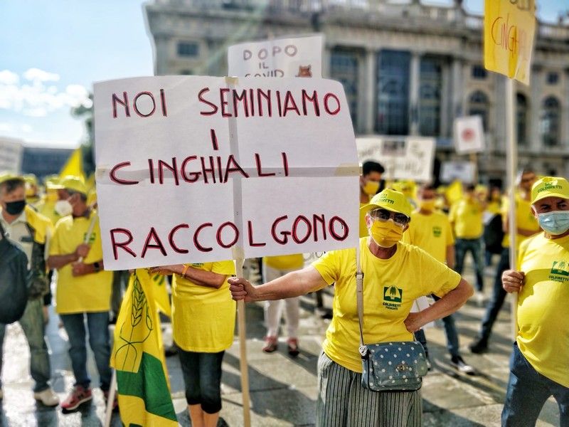 Manifestazione ieri mattina degli agricoltori della Coldiretti che si sono ritrovati davanti alla Regione, in piazza Castello, per denunciare ancora una volta i danni causati dall’incontrollato proliferare dei cinghiali.
