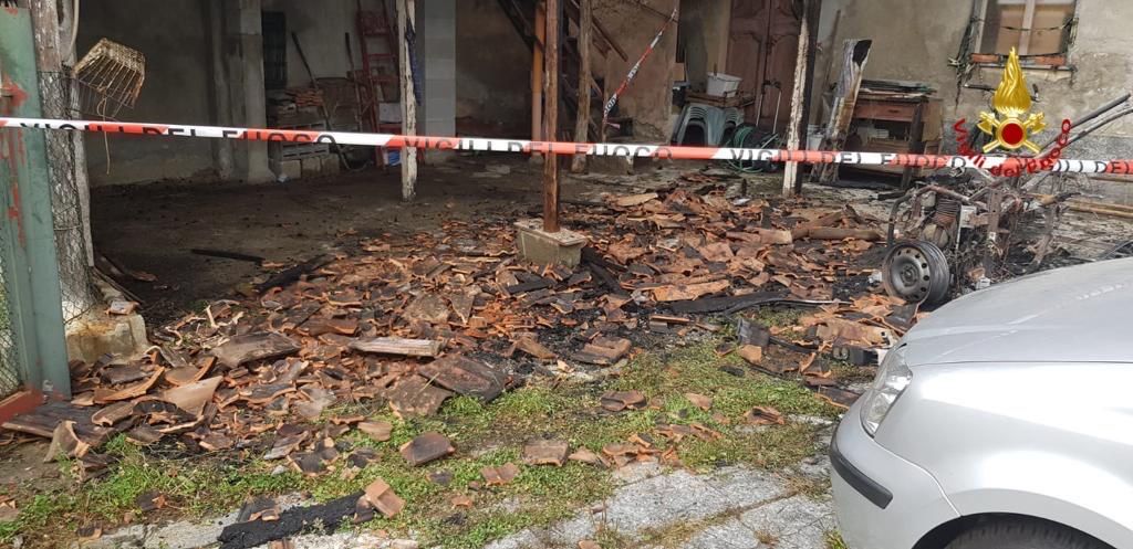 Nell’incendio una microcar è andata completamente distrutta e un auto è stata danneggiata gravemente mentre una porzione delle tettoia è crollata.