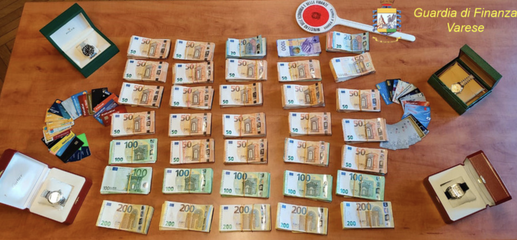 Nel corso dell’esecuzione del provvedimento, le Fiamme Gialle hanno perquisito abitazioni ed aziende con il supporto di 3 unità cinofile “antivaluta” (cash-dog) e con l’ausilio di scanner di ultima generazione al fine di rilevare la presenza di denaro contante appositamente occultato nei luoghi nella disponibilità dei 3 soggetti attinti dalle misure cautelari in carcere. Infatti, proprio durante tali operazioni di ricerca delle banconote sono state trovate oltre 40 carte di credito usate per ritirare il contante e, nascosti in un’intercapedine, 260 mila euro in contanti, insieme ad orologi di pregio quali rolex e cartier.