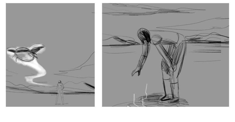 «Ringrazio Eos Solutions per la grande libertà che mi ha concesso nel rappresentare la sua storia e quella del ventennio 2000-2020. Mi sono ispirato alla Divina Commedia, dove l'azienda Eos diventa un “Virgilio” dantesco al femminile che ci conduce attraverso il deserto alla scoperta del futuro – spiega Emiliano Ponzi - Il deserto rappresenta uno spazio immenso, una pagina bianca tutta da scrivere: la figura umana femminile che ci accompagna simboleggia la tecnologia digitale di Eos. Una tecnologia empatica, a misura d'uomo».