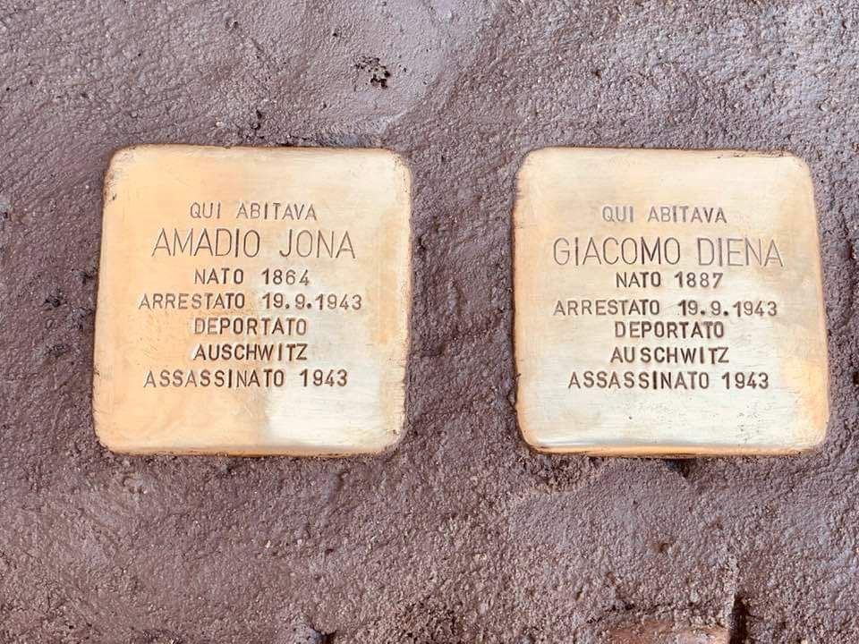 Nell’ultima tappa del percorso in piazza Santa Caterina da Siena, sono state apposte, due "pietre d'inciampo", che ricordano Giacomo Diena e Amadio Jona, catturati a Novara nel settembre del 1943 e uccisi ad Auschwitz.