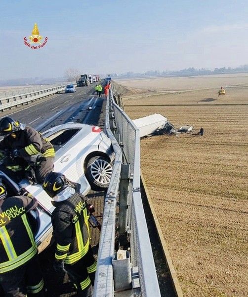 Gravissimo anche il conducente del tir: l'autoarticolato, dopo l'incidente, ha sfondato il parapetto della Tangenziale, precipitando nei campi sottostanti: nell'impatto l'autista, è stato sbalzato fuori dalla cabina, riportando ferie gravissime. A dare l'allarme gli altri automobilisti in transito, che hanno anche cercato di prestare i primi soccorsi.
