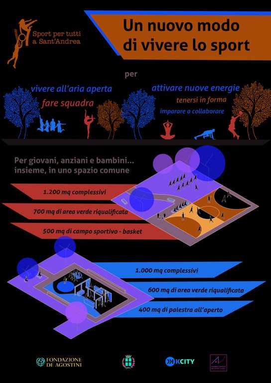 “Sport per tutti a Sant’Andrea” intende promuovere lo sport come veicolo di benessere e inclusione, rendendo fruibili, attrezzati e vitali due spazi attualmente sottoutilizzati del quartiere, e organizzando attività sportive gratuite, dimostrative e interattive rivolte agli abitanti di Sant’Andrea ma anche alla cittadinanza in generale.