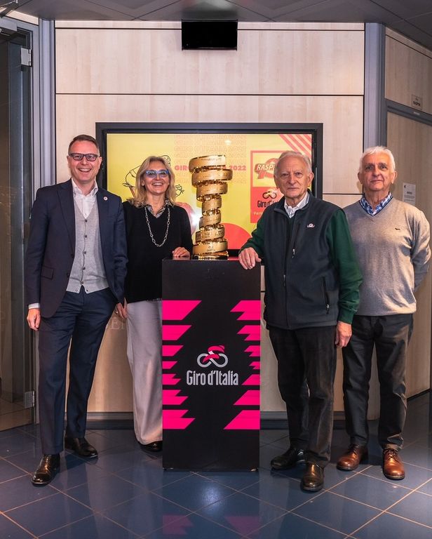 La presenza del “Trofeo Senza Fine”, l’iconica opera che premia il vincitore del Giro d’Italia, è stato il segno più tangibile dell’impegno assunto da Raspini per sostenere, come Partner Ufficiale per il triennio 2022/2024, una delle più amate manifestazioni sportive italiane, il Giro d’Italia e il Giro-E.