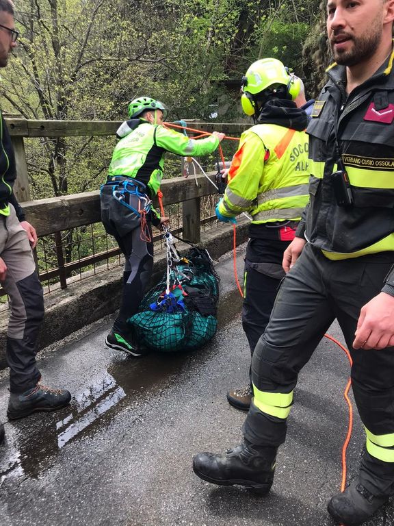 "Abbiamo lavorato congiuntamente con i vigili del fuoco - spiega Matteo Gasparini, responsabile della Decima delegazione Valdossola del Cnsas. - Per la presenza dei cavi elettrici non si è potuto operare con un verricellamento con l'elicottero, l'unica soluzione quindi è stata quella di predisporre un paranco direttamente sul ponte". Alle operazioni, come spiega Gasparini, hanno preso parte sia i vigili del fuoco che i soccorritori del soccorso alpino, in particolare la squadra forra.