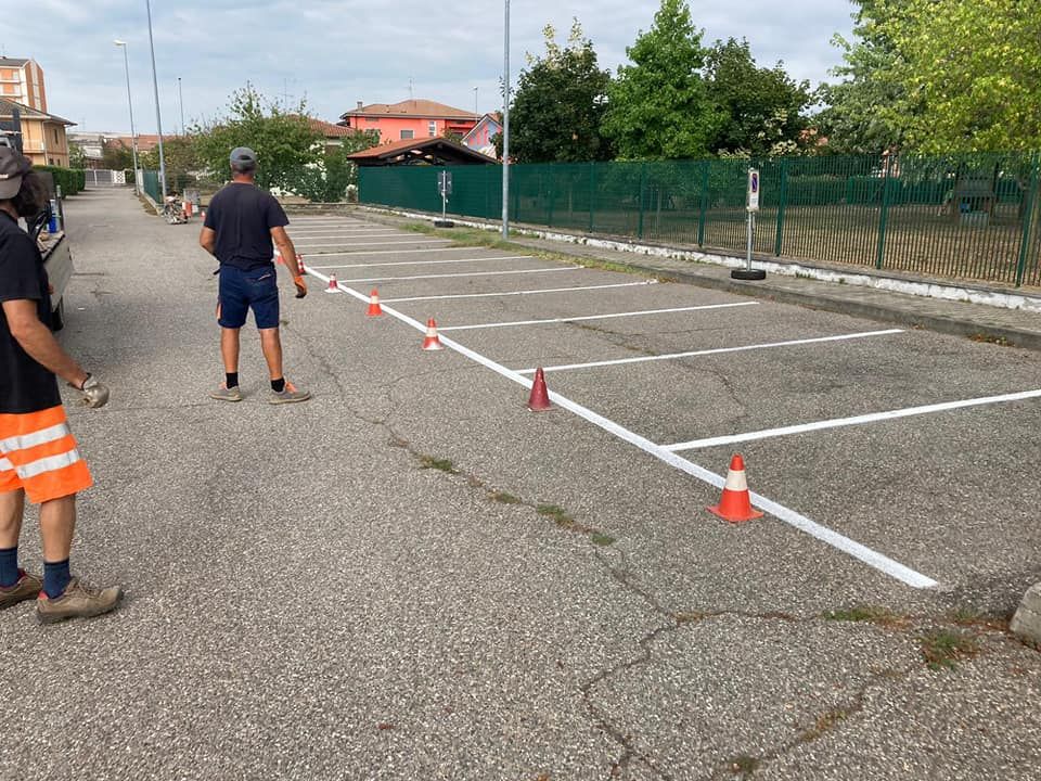 Le zone interessate in questo lotto sono i parcheggi della scuola dell'infanzia, i parcheggi nel piazzale del Municipio, i parcheggi in Via Valsesia, la segnaletica in piazza Rina Musso e in Via San Adalgiso angolo Via Magistrini.
