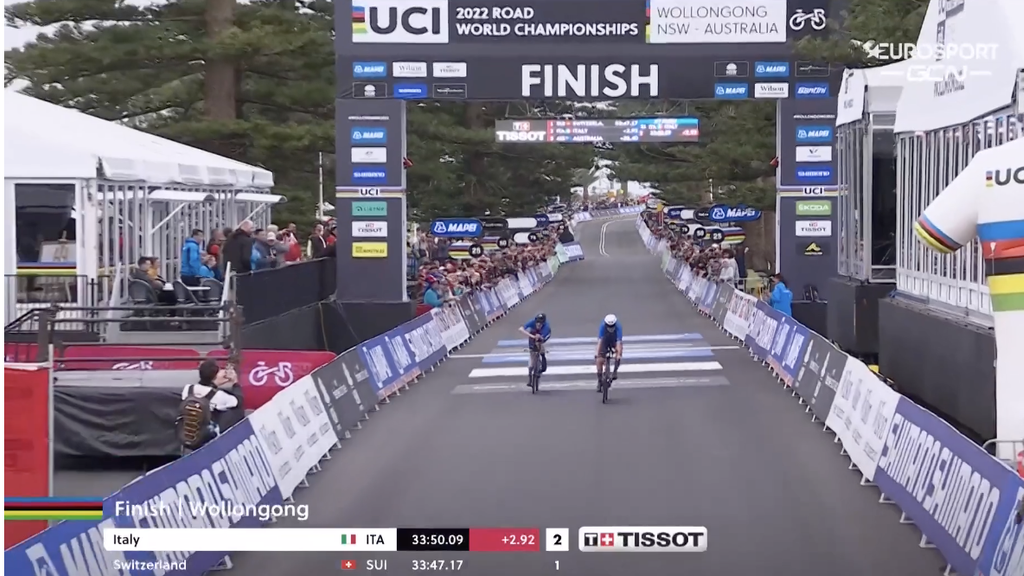 L'Italia di Filippo Ganna ed Elisa Longo Borghini, conquista la medaglia d'argento nella staffetta mista ai Mondiali di ciclismo. Un po' di rammarico per gli azzurri: l'oro sfuma per 2''92 dopo una prova superlativa delle ragazze guidate proprio da Elisa Longo Borghini. L'oro va alla Svizzera di Küng e Bissegger che diventa Campione del mondo. Al 3° posto la Germania.