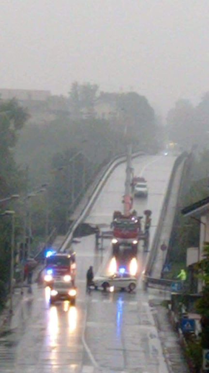 Di recente l'assessorato ai lavori pubici del Comune aveva riferito in una commissione consiliare gli esiti di una attività di monitoraggio di ponti e viadotti: il cavalcavia oggi sprofondato non era stato citato tra quelli con potenziali rischi. Sul posto i vigili del fuoco e la polizia locale. Il traffico è interrotto nelle due direzioni.