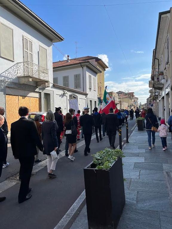 Prima della celebrazione della messa, officiata da don Alessandro Maffiolini e animata dai canti del coro “Don Gambino”, il sindaco Federico Binatti ha tenuto la prolusione, nella quale ha ricordato "il valore inestimabile della libertà raggiunta con il sacrificio di numerose persone per dare vita a Paese democratico", tracciando un parallelismo tra "gli orrori vissuti dalla popolazione durante l’occupazione tedesca nella seconda Guerra mondiale e quelli che sta vivendo oggi l’Ucraina. La guerra che noi non abbiamo, per nostra fortuna, direttamente vissuto e che costituzionalmente ripudiamo ci deve far riflettere sempre".
