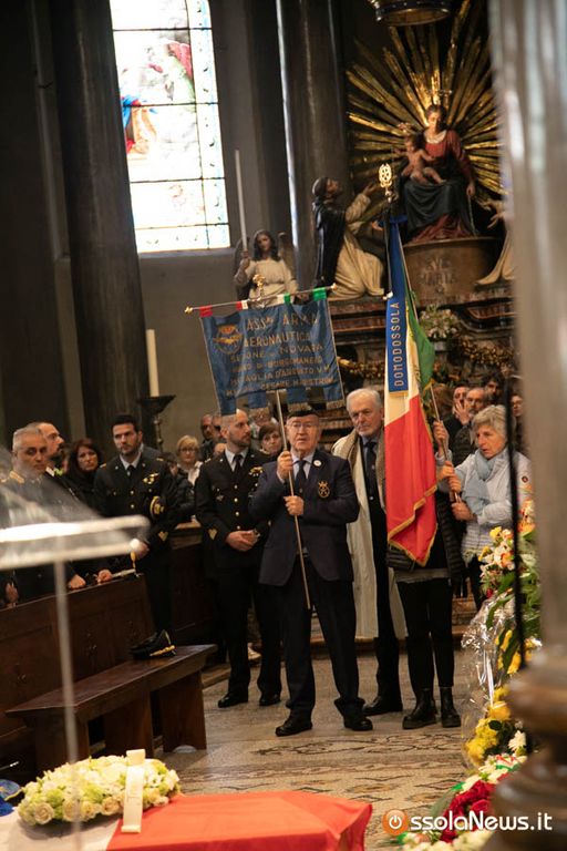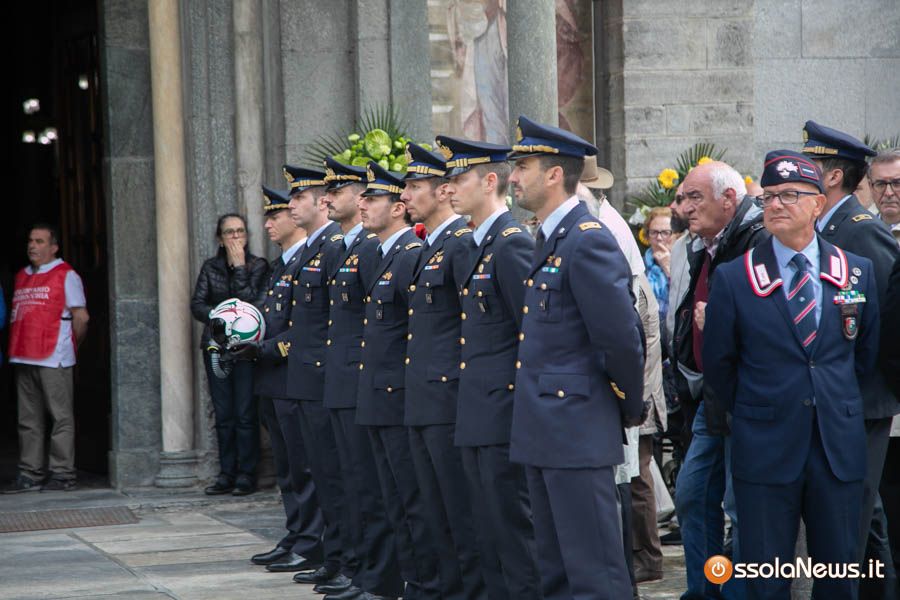 Con le autorità – in chiesa erano presenti tra gli altri il sindaco di Domodossola Lucio Pizzi e il senatore Enrico Borghi – la moglie Jenny, i figli Giorgio e Cecilia, i genitori Franco e Mirella, il fratello Giacomo, tanti amici e conoscenti del pilota, tante associazioni locali oltre a una folta rappresentanza dell’aeronautica.