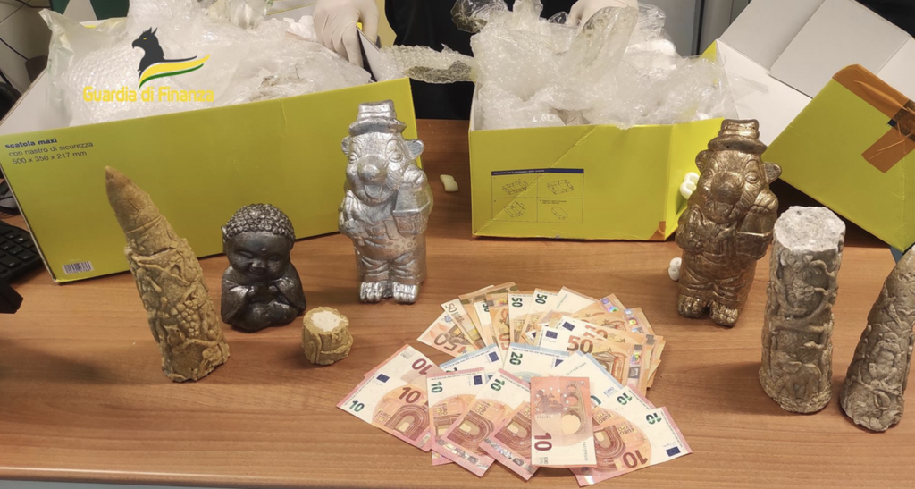 La peculiarità del servizio ha riguardato le modalità di occultamento della sostanza stupefacente che è stata pressata al fine di creare statuette di varie forme come: orsetti, statue del buddha e colonnine raffiguranti vari animali, totalmente composti da MDMA e in grado dunque di trarre in inganno eventuali controlli.