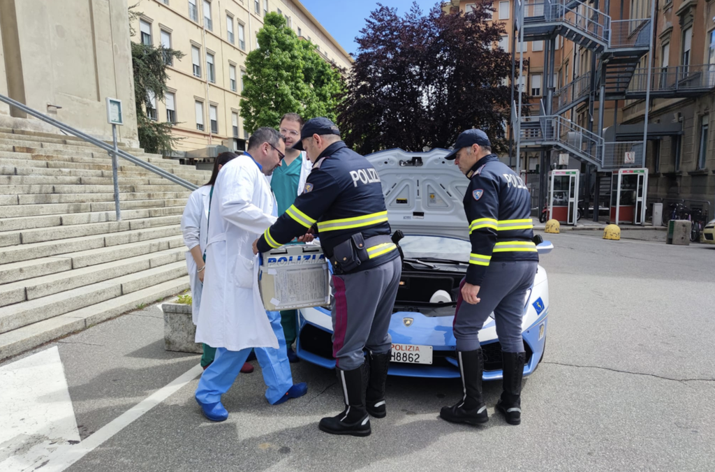 L'organo è stato trasportato a Roma con la Lamborghini della Polizia di Stato