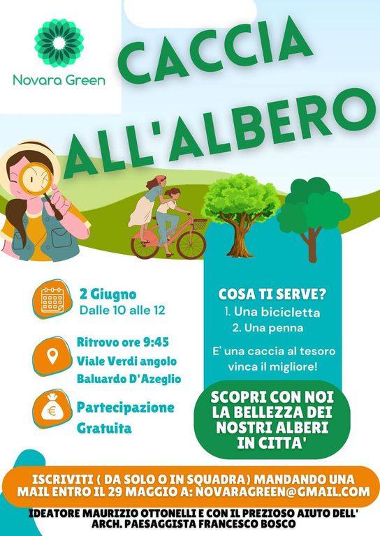 Le iscrizioni a Caccia all’Albero sono aperte e possono essere effettuate entro il 29.05.2023 alla mail novaragreen@gmail.com specificando se si partecipa da soli o in squadra.
