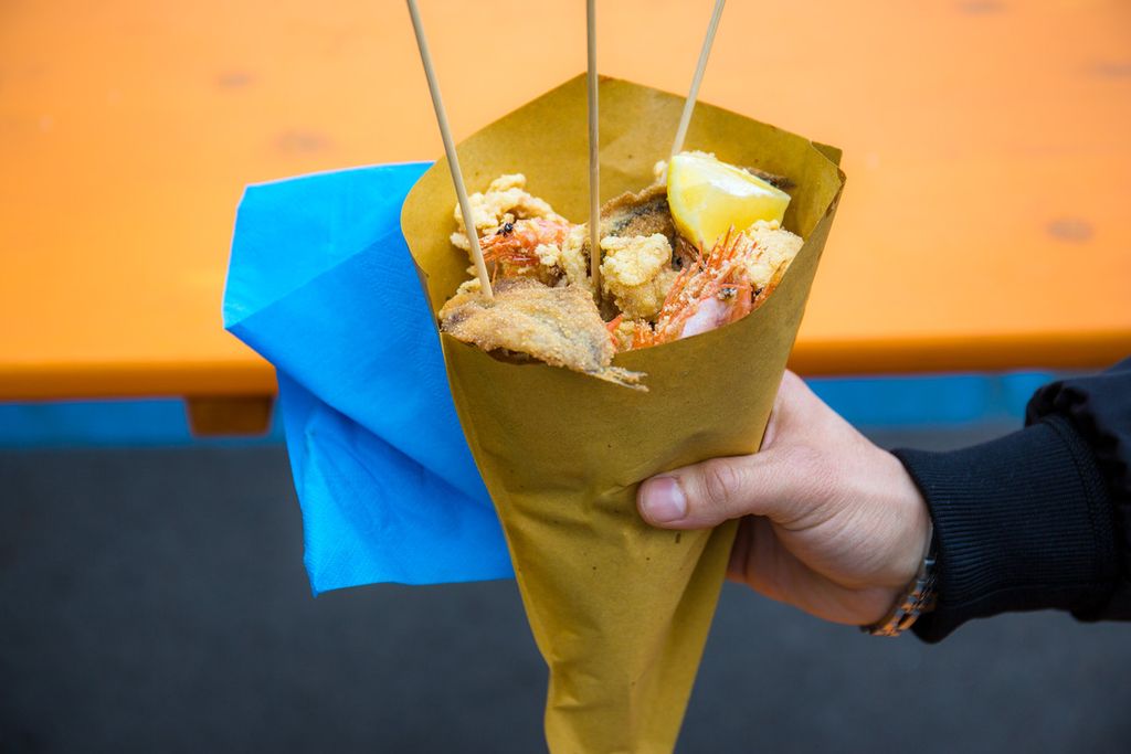 Tantissime le proposte tra cui scegliere, a cominciare dai sapori tipici della nostra gustosa Italia: gli arrosticini abruzzesi e le olive ascolane da “Apetitosa”; pane e panelle, pane cunzato e con milza, mini arancini, panzarotti e cannoli siciliani riempiti al momento da “I sapori di Sicilia”; un salto in centro Italia per lo gnocco fritto con salumi o nutella e la pinsa da “Mordicchio on the Road”, oppure da “Pan Pan” per pan tometta, pan tartufo e pan pork o da “Na Pinta”, con vini del Piemonte, cocktails e le sue polpette di carne e verdure. Non mancheranno i sapori del Piemonte da “Sound Break” (raviolini del plin, hamburger e battuta di Assona, stracotto al nebbiolo, vitello tonnato, salsiccia di Bra) e il gusto del mare con le proposte del “Kraken” come frittura di pesce e specialità con salmone, moscardini o pesce spada.