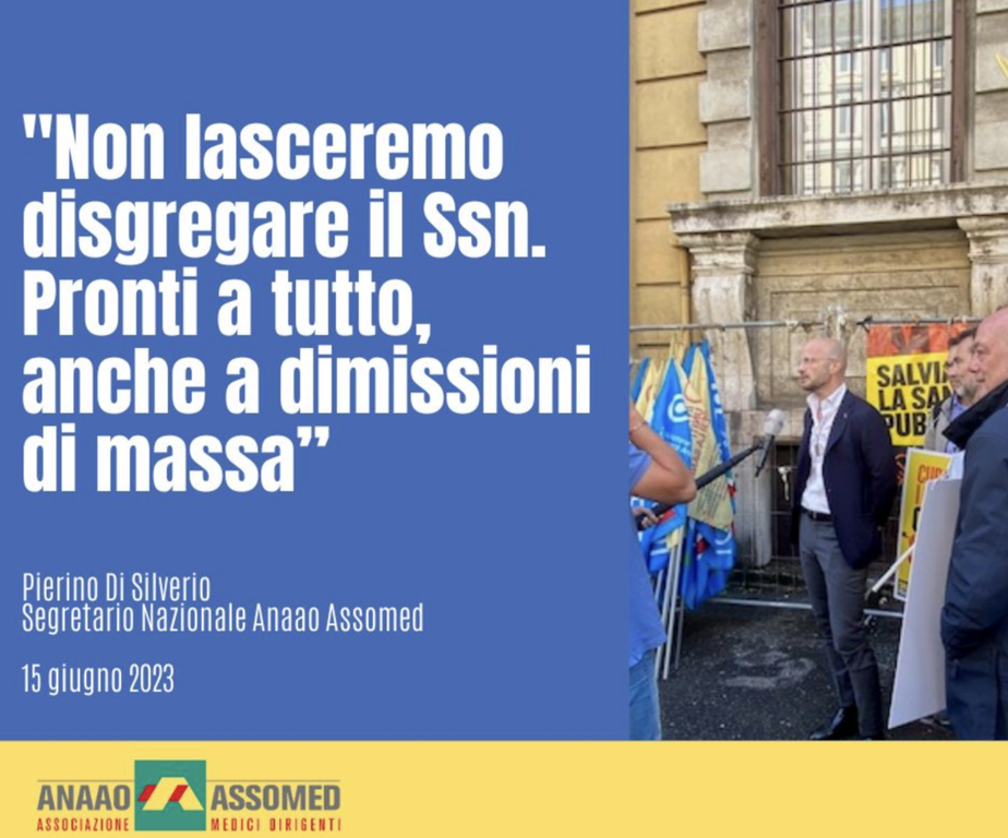 “Non lasceremo disgregare il Servizio Sanitario Nazionale. Pronti a tutto, anche a dimissioni di massa”. Lo afferma Pierino Di Silverio, segretario nazionale del sindacato medici e dirigenti sanitari SSN Anaao Assomed.