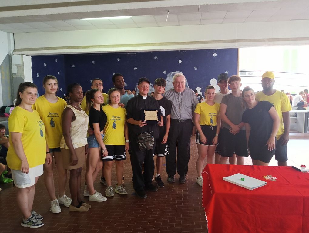 “Torno volentieri a trovarvi – ha detto Sua Eccellenza ai bambini – e vedo che siete tanti, segno che al vostro Grest vengono non solo i ragazzi di Lumellogno, ma anche quelli della città. Ringrazio anche gli animatori che prestano un servizio importante per rendere le giornate felici con gioia, amicizia e preghiera”.