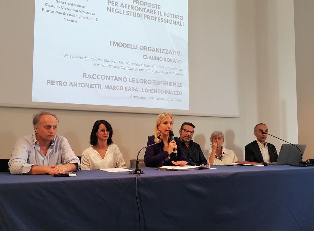 Annalisa Coda Zabetta, presidente dell’Ordine dei Consulenti del Lavoro di Novara, ha aperto la parte istituzionale della giornata affiancata dai membri del Consiglio Stefano Rotondo (segretario), Cecilia Brustia (tesoriere), Fabio Brega (consigliere), Antonio Marrone (consigliere), e Roberta Angelé (presidente del Collegio dei revisori dei conti).
